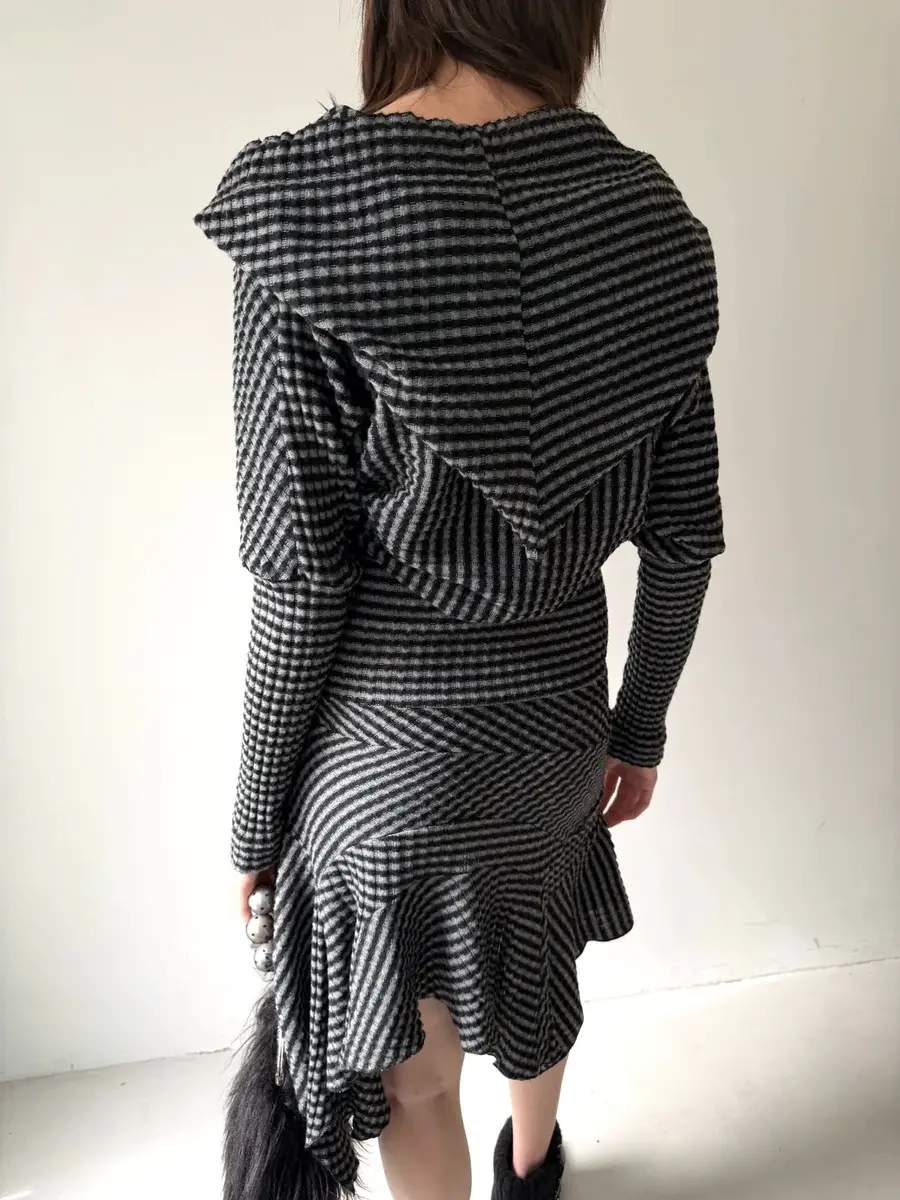 Nφdress / Black & White Striped Knit Hoodie Dress